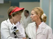 Schwindendes MisstrauenWaltraud Mansfeld (Gertie Honeck, links) wird mit einer schmerzenden Schulter in die Sachsenklinik eingeliefert. Oberschwester Ingrid (Jutta Kammann) und Prof. Simoni kennen die verwitwete Frau vom Golfplatz.Bild: © MDR/MDR/Krajewsky