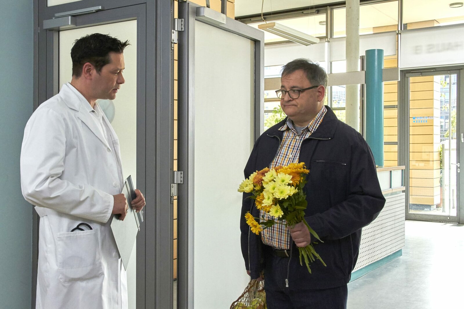 Mehr als nur dasRudi Heine (Mirko Reseg, re.) erfährt von Dr. Kaminski (Udo Schenk, li.), dass bei ihm der Verdacht auf Krebs besteht.Bild: © MDR/Krajewsky