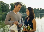 Ein Wochenende in SöderholmInga Lindström - Ein Wochenende in Söderholm Champagner am Seeufer: Jan Sosniok als Sören Sand, Janina Flieger als Lena HellbergBild: © SRF
