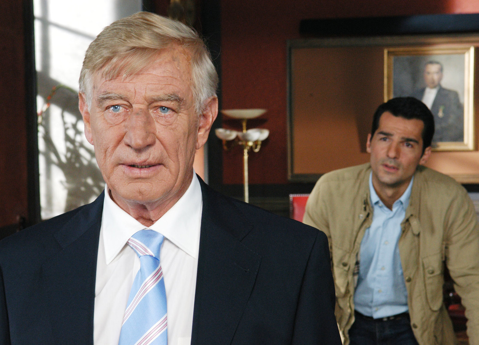 Sprung ins GlückAxel bittet seinen Vater, Louise die Lizenz nicht zu entziehen: Siegfried Rauch als Axels Vater Henrik, Erol Sander als AxelBild: © SRF
