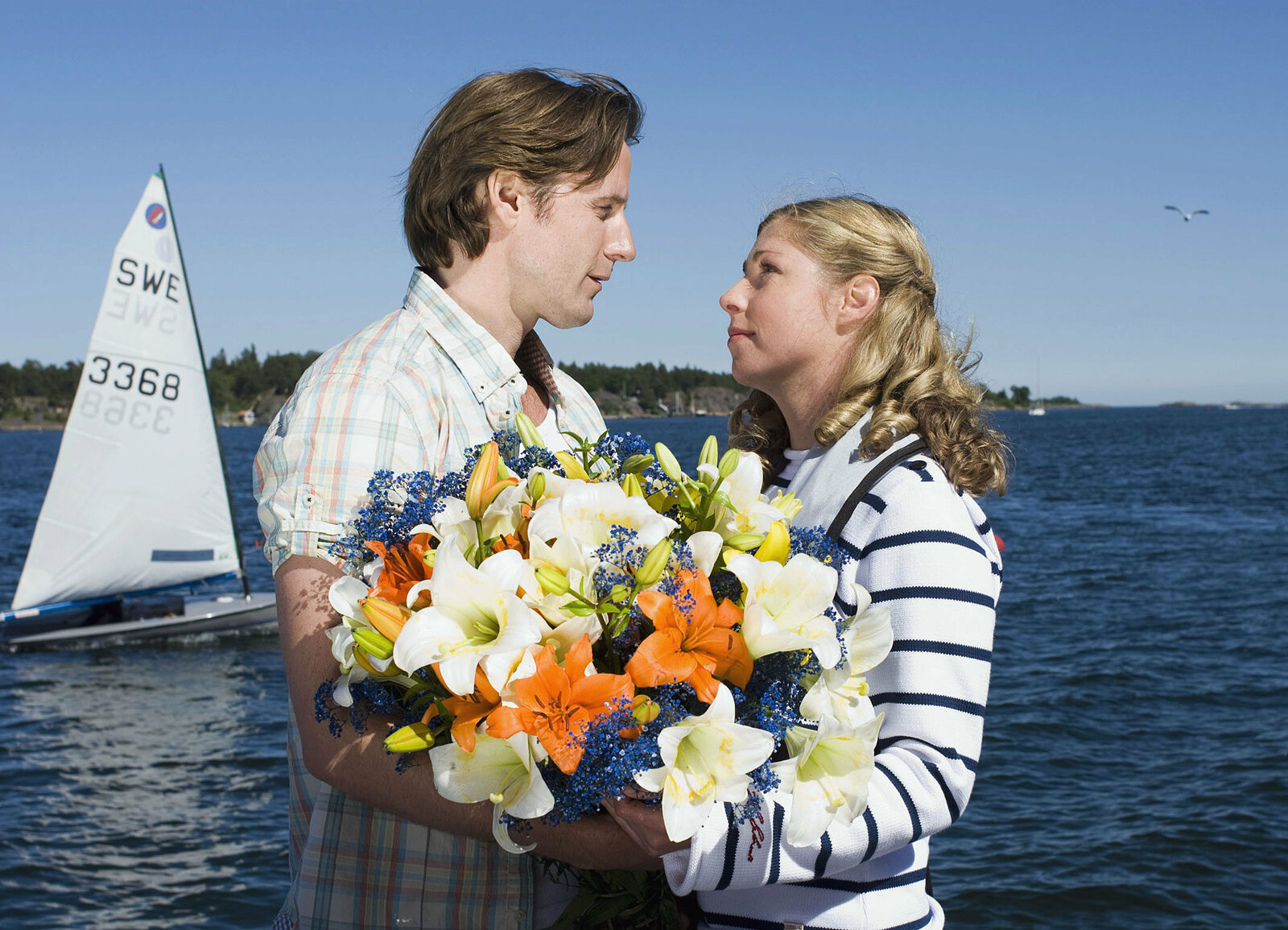 MittsommerliebeHeile Welt: Marek Erhardt als Bertil Svensson, Eleonore Weisgerber als Silvia Blomquist, Christina Beyerhaus als Anna BlomquistBild: © SRF/ZDF/Marco Meenen