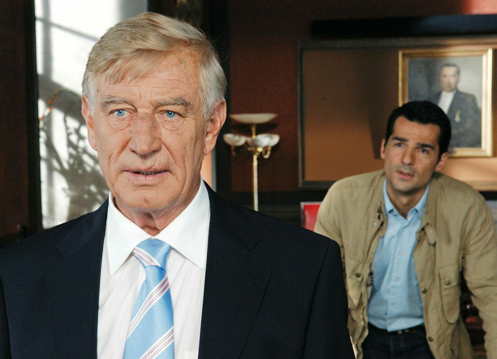 Sprung ins GlückInga Lindström - Sprung ins Glück Axel bittet seinen Vater, Louise die Lizenz nicht zu entziehen: Siegfried Rauch als Axels Vater Henrik, Erol Sander als AxelBild: © SRF