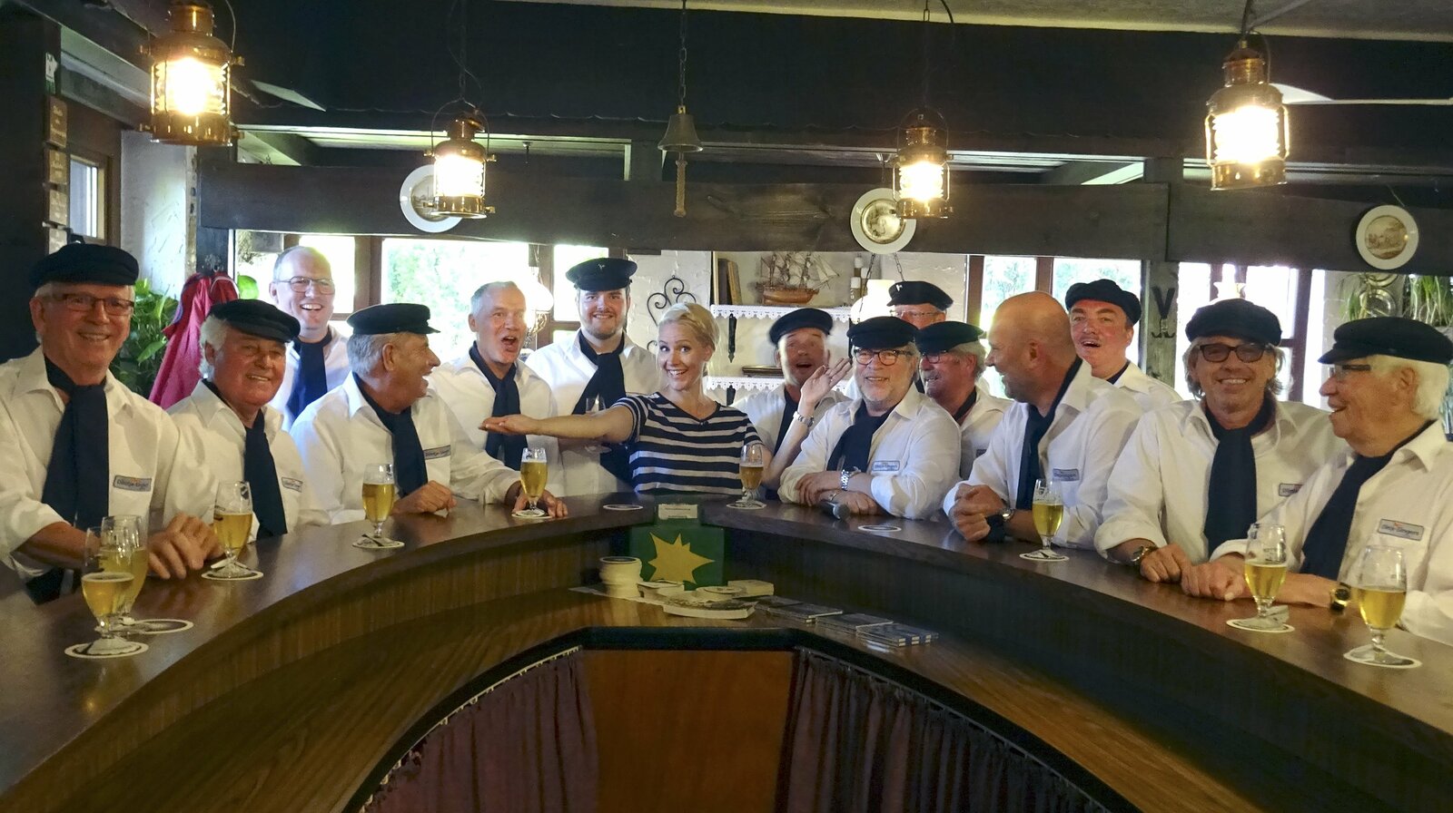 Judith Rakers im Kreis der Döntje Singers bei ihren Proben im "Old Smuggler".Bild: © NDR/doclights/Michel Wehmschulte