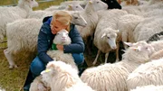 Borkum, Pellworm und BaltrumJudith Rakers auf Tuchfühlung mit Borkumer Heidschnucken.Bild: © NDR/Doclights GmbH/Nils Göhringe / NDR Presse und Information