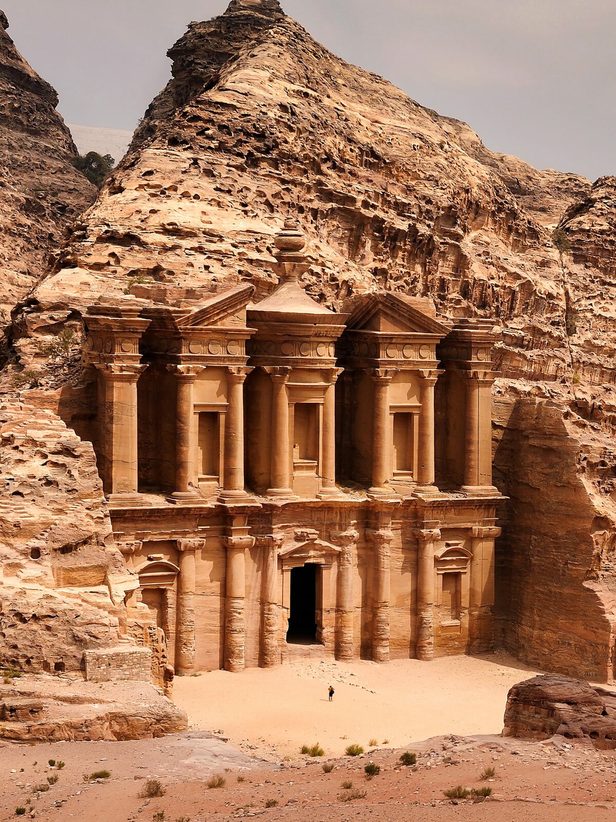 Die sieben Wunder der SeidenstraßeEl Deir - The Monastery, Petra, Jordan. There is a person by the doorway to get a scale of the size. This is building carved out of rock in the ancient Jordanian city of Petra. Built by the Nabataeans in the 1st century it measures 50 meters wide by approximately 45 meters high.Bild: © Discovery Channel