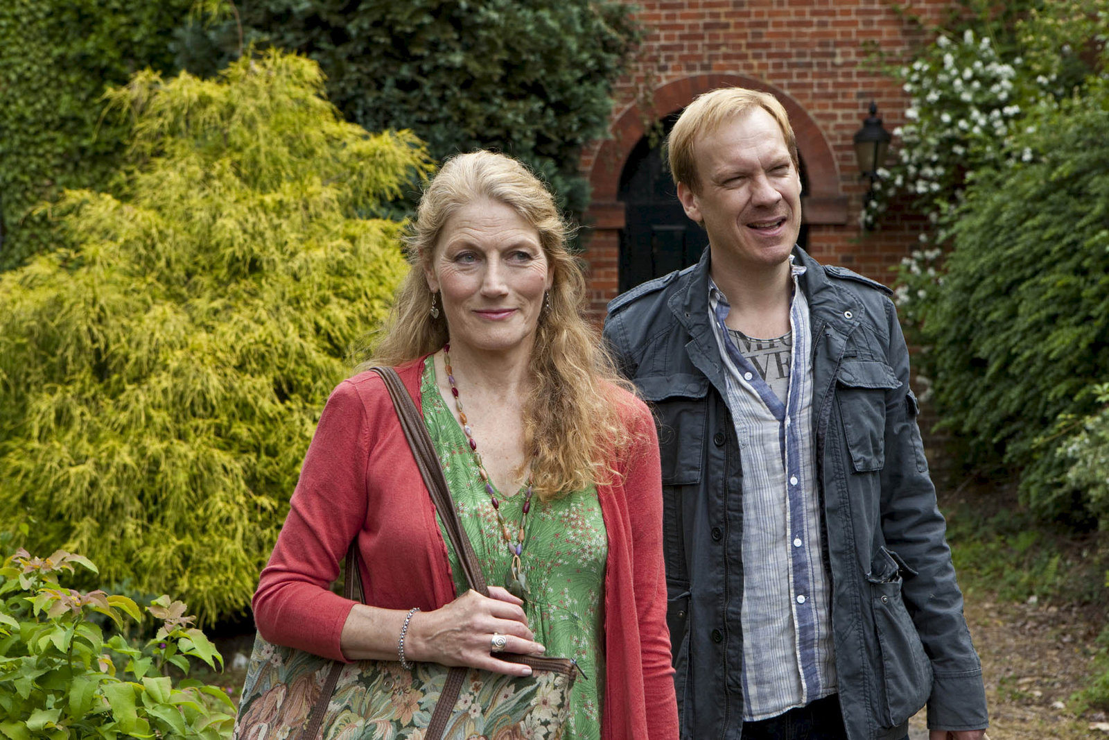 Der Schatten des TodesPfarrer Wentworth (Richard Briers, r.) und Dr. Barbara Henson (Mossie Smith, l.) genießen das mittelalterliche Dorffest in Badger's Drift.Bild: © ZDF und Bentley Production./Bentley Production