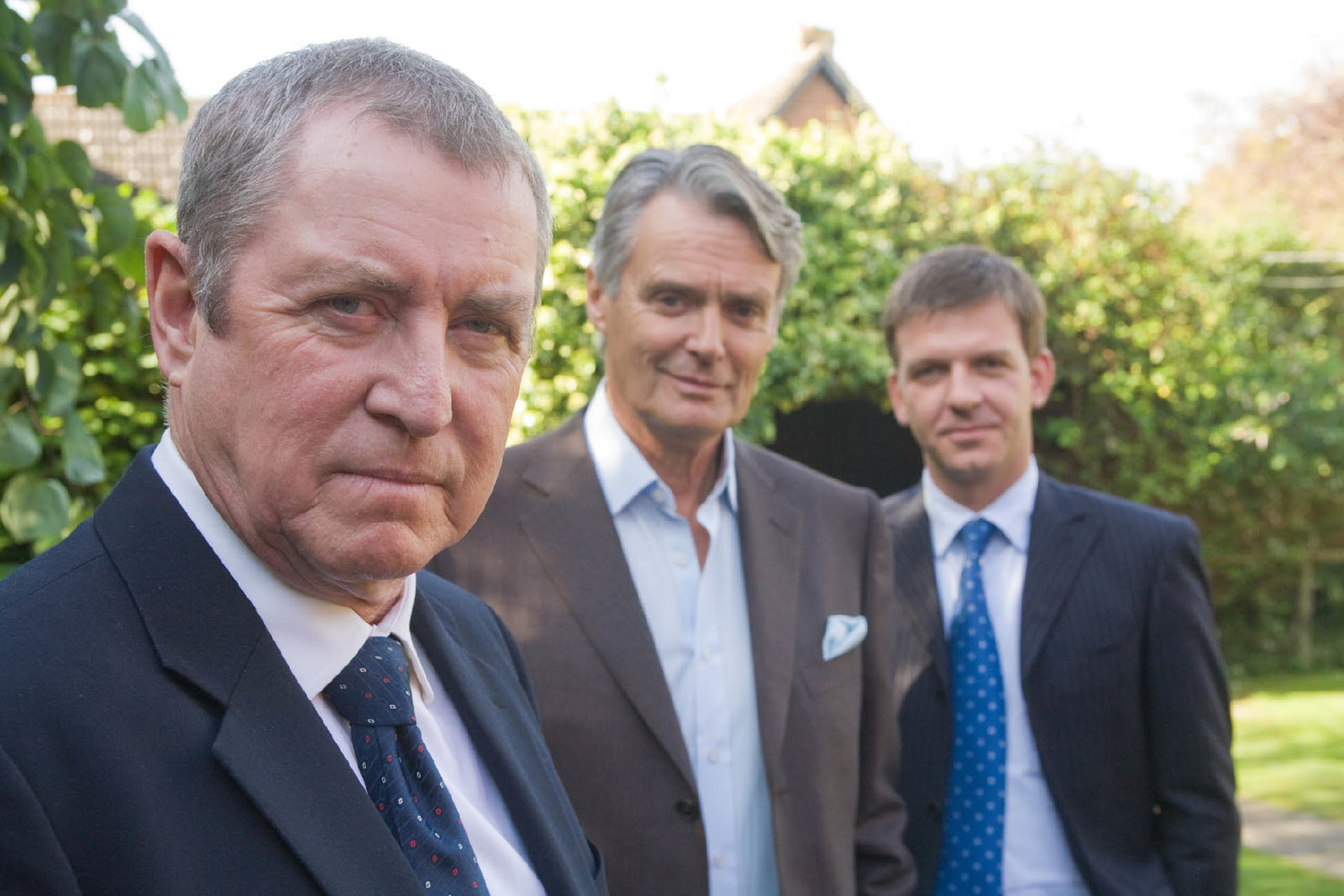 Leben und Morden in MidsomerChief Inspector Barnaby (l: John Nettles), Guy Sandis (M.: Simon Williams) und Sergeant Jones (Jason Hughes)Bild: © ZDF und All3Media