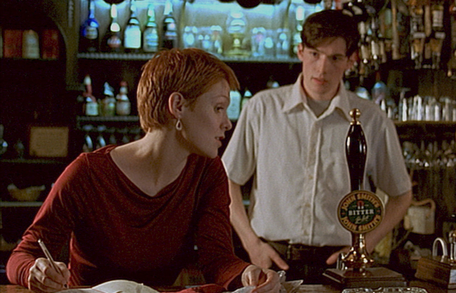 Sport ist MordCharles Jennings (Terence Corrigan, r.) benötigt für seinen Plan die Hilfe der attraktiven Trish (Zoe Hart, l.), mit der er gemeinsam im Pub arbeitet.Bild: © ZDF und All3Media