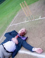 Die Zierstich-GesellschaftDCI John Barnaby (Neil Dudgeon, l.) und DS Jamie Winter (Nick Hendrix, M.) staunen nicht schlecht, als Rechtsmedizinerin Fleur Perkins (Annette Badland, r.) ihnen die Besonderheit der Mordwaffe erklärt: ein japanisches Shinai-Schwert aus Bambus, das in der Brust von Rueben Tooms (Silas Carson, 2.v.r.) steckt.Bild: © ZDF und Mark Bourdillon.