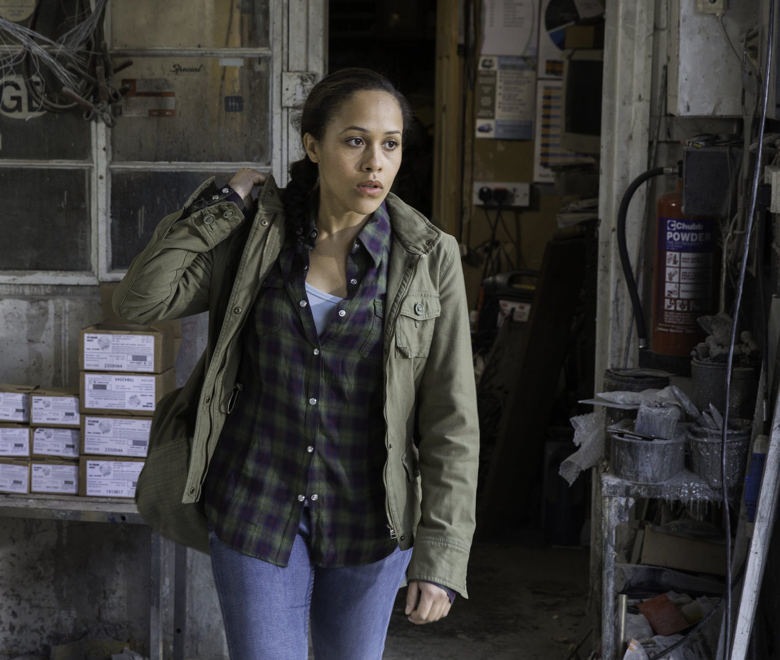 Alles Böse kommt von obenOrla Campbell (Tanya Fear) verlässt die Werkstatt, in der sie einer heimlichen Beschäftigung nachgeht.Bild: © ZDF und Neil Genower