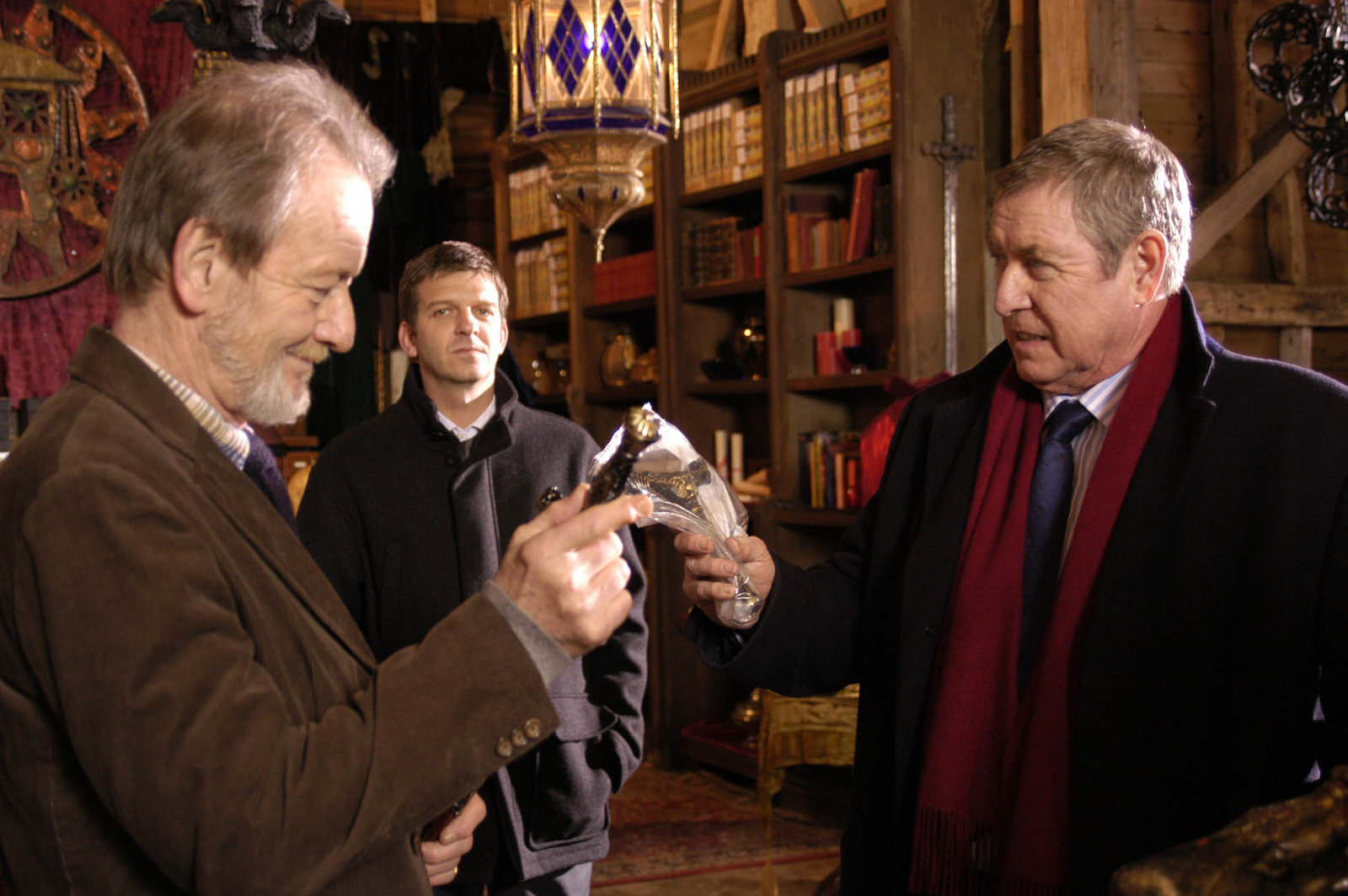 Der Wald der lebenden TotenErnest Balliol (Ronald Pickup, l.), Sergeant Jones (Jason Hughes, M.) und Inspector Barnaby (John Nettles, r.).Bild: © ZDF und All3Media
