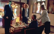 Brennen sollst du!Alan Clifford (2.v.r.: Keith Barron) erklärt Inspector Barnaby (l.: John Nettles), dass er sterben will, wie er gelebt hat: in Luxus. Die Ärztin Kata Malpas (2.v.l. Kelly Hunter) und die Pflegerin Agnes Waterhouse (Maggie o'Neill) umsorgen den Todkranken.Bild: © ZDF