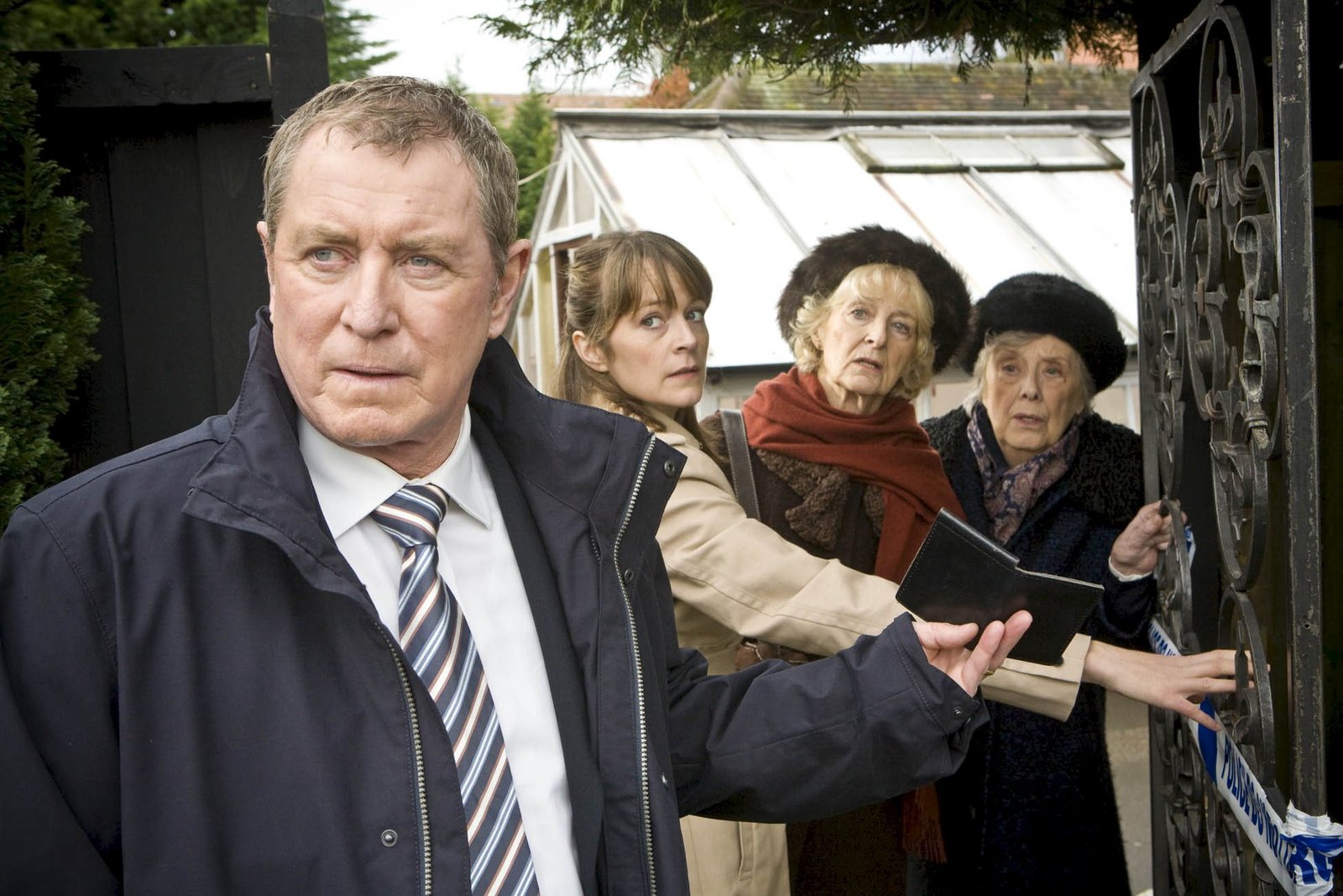 Böse kleine WeltDCI Chef Inspector Barnaby (John Nettles, l.) lässt den Tatort, die Miniatur-Welt, durch seine Assistentin DC Gail Stephens (Kirsty Dillon, 2.v.l.), sperren. Auch Hilary (Caroline Blakiston, 2.v.r.) und Harriet (Margaret Tyzack, r.) dürfen nicht hinein.Bild: © ZDF und Mark Bourdillon