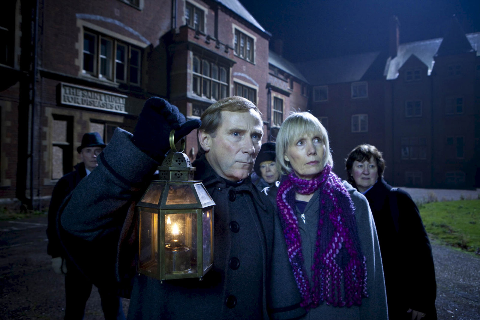 GeisterwanderungV.l.: Komparse, Jeff Bowmaker (Danny Webb), Joyce Barnaby (Jane Wymark), KomparsinBild: © ZDF und Mark Bourdillon