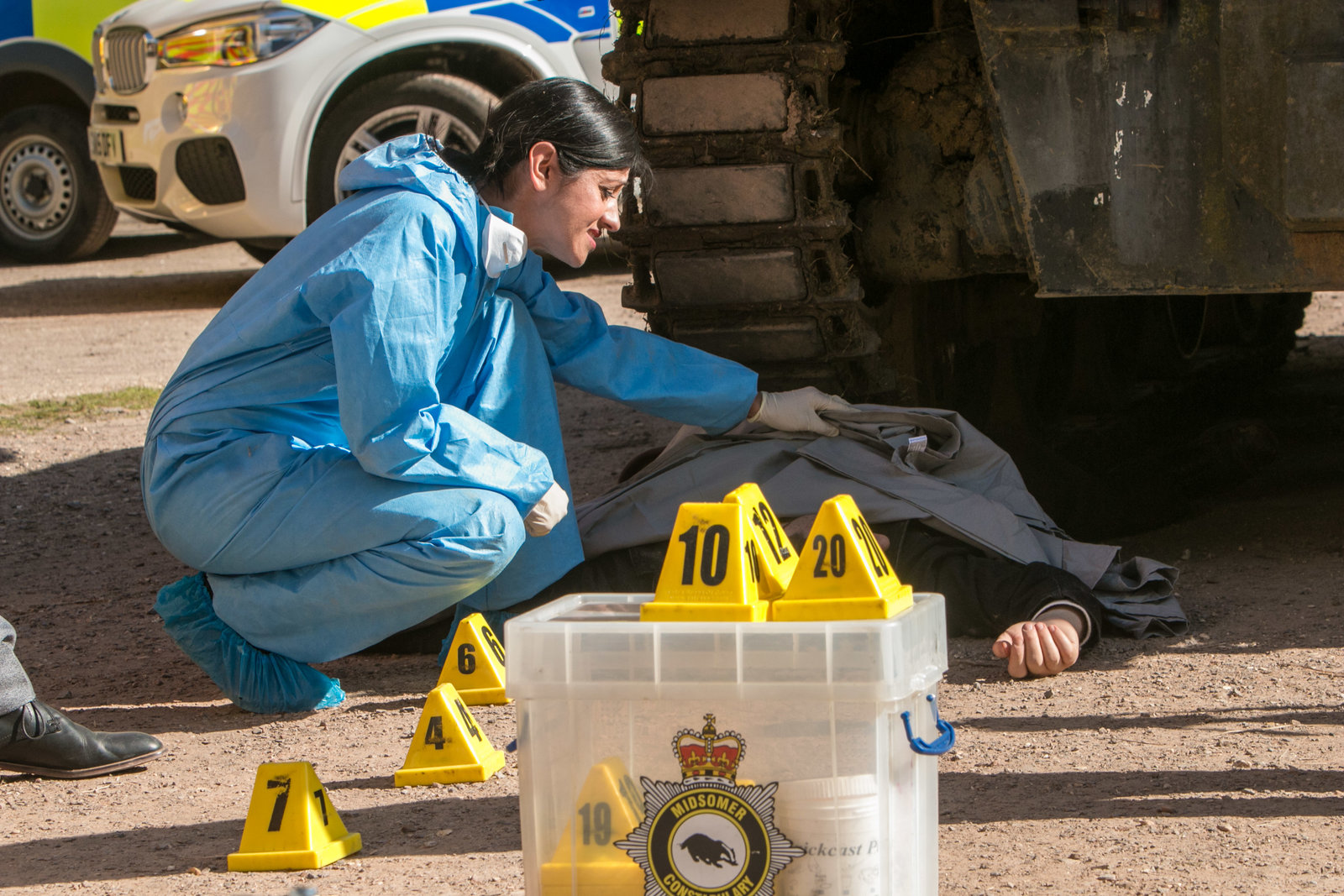 Mord nach altem RezeptRechtsmedizinerin Fleur Perkins (Annette Badland) untersucht die Leiche von Emani Taylor (Amber Aga) in den Gemäuern von Causton Abbey.Bild: © ZDF und Mark Bourdillon.
