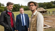 Heilige und EiligeDS Nelson (Gwilym Lee, l.) und DCI Barnaby (Neil Dudgeon, M.) fragen sich, ob Grabungsassistent Dexter Ingram (Stefano Braschi, r.) so ahnungslos ist, wie er sich gibt.Bild: © ZDF und Copyright all3 media./Copyright all3 media