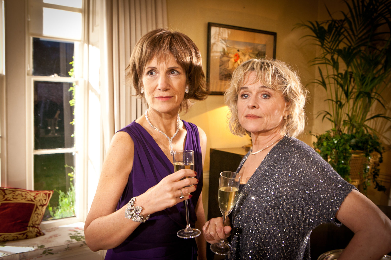 Der Tod geht ins KinoDie beiden Schwestern Diana Davenport (Harriet Walter) und Stella Harris (Sinéad Cusack).Bild: © ZDF und All3Media Verwendungsrecht: 24.04.2014 - 23.04.2019
