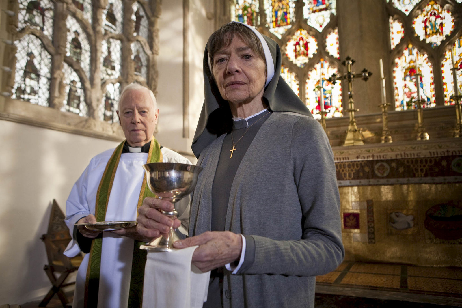 Mord von MeisterhandV.l.: Rev. Gregory (Clifford Rose), Sister Agnes (Elizabeth Bell)Bild: © ZDF und Mark Bourdillon