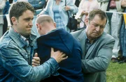 Trau, schau, wem!Sergeant Troy (Daniel Casey, l.) und Inspector Barnaby (John Nettles, r.) können den psychisch kranken Dean Hunniset (Paul Brennan, M.) nur mit Gewalt von einem Übergriff auf einen Besucher der Veranstaltung abhalten.Bild: © ZDF und All3Media