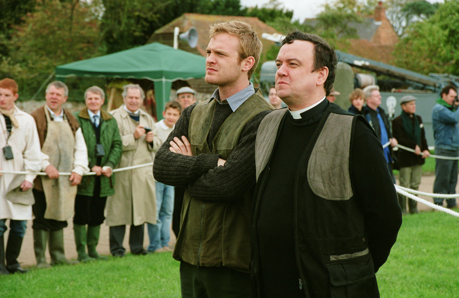 Erst morden, dann heiratenReverend Anthony Gant (Richard McCabe, r.) muss sich zu Pferd gegen eine Schar Frauen behaupten - so will es die Tradition dieses Dorffestes. Roland Marwood (Joseph Kennedy) wird ihm die Daumen drücken.Bild: © ZDF