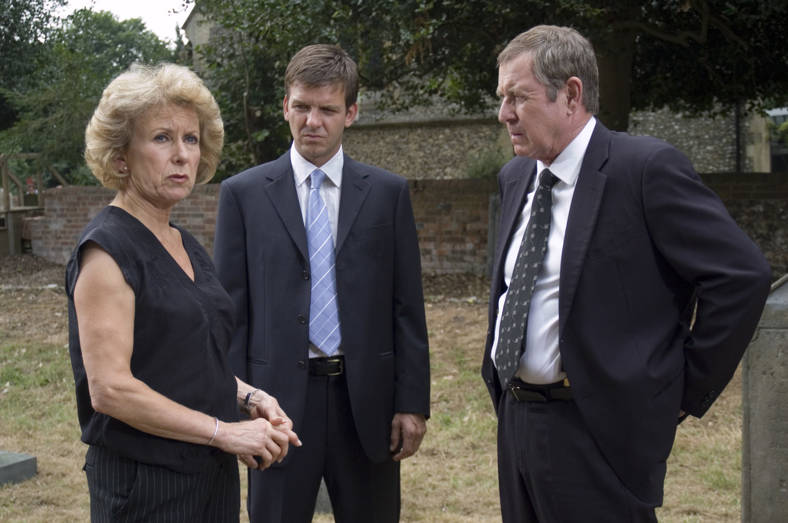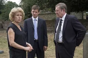 Ein Sarg aus ChinaV.l.n.r.: Die Witwe Hilary King (Susan Tracy), DS Ben Jones (Jason Hughes) und DCI Tom Barnaby (John Nettles)Bild: © ZDF und All3Media