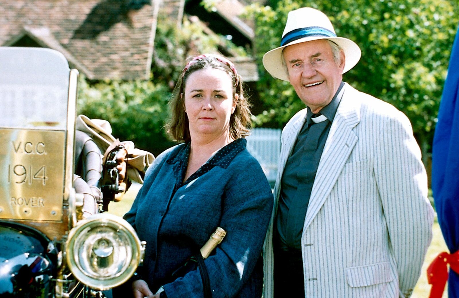 Der Schatten des TodesPfarrer Wentworth (Richard Briers, r.) und Dr. Barbara Henson (Mossie Smith, l.) genießen das mittelalterliche Dorffest in Badger's Drift.Bild: © ORF/ZDF/Bentley Production