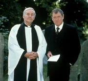 Der Schatten des TodesPfarrer Stephen Wentworth (Richard Briers, l.) berichtet Inspector Barnaby (John Nettles, r.) von einem Einbruch in sein Haus in der Mordnacht.Bild: © ZDF und Bentley Production