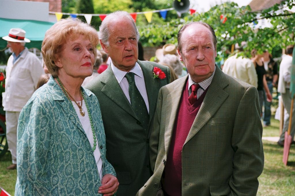 Immer wenn der Scherenschleifer ...Shirley Bennett (Christine Moore, l.), Dr. Charles Rust (John Standing, M.) und Donald Tew (John Normington, r.).Bild: © ZDF und All3Media