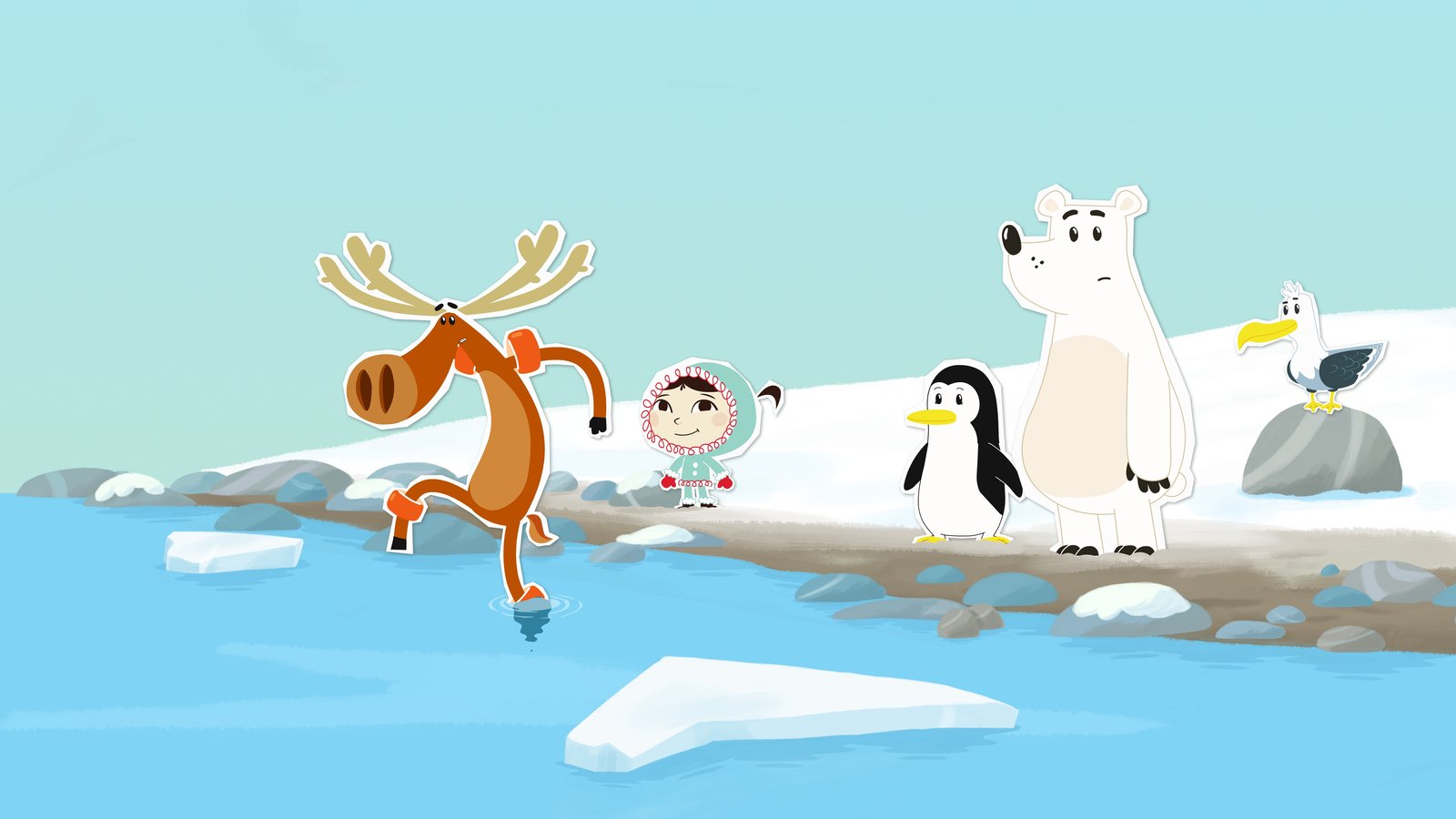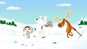 Die Knuddel-WetteElch Hubert nimmt an, dass er am Nordpol sehr beliebt ist. Er hat gewettet, dass er in kurzer Zeit von f??nf Tieren geknuddelt wird. Beim Schneehasen Siggi klappt das auch sofort, aber dann droht die Wette zu scheitern.Bild: © ZDF/JEP Animation