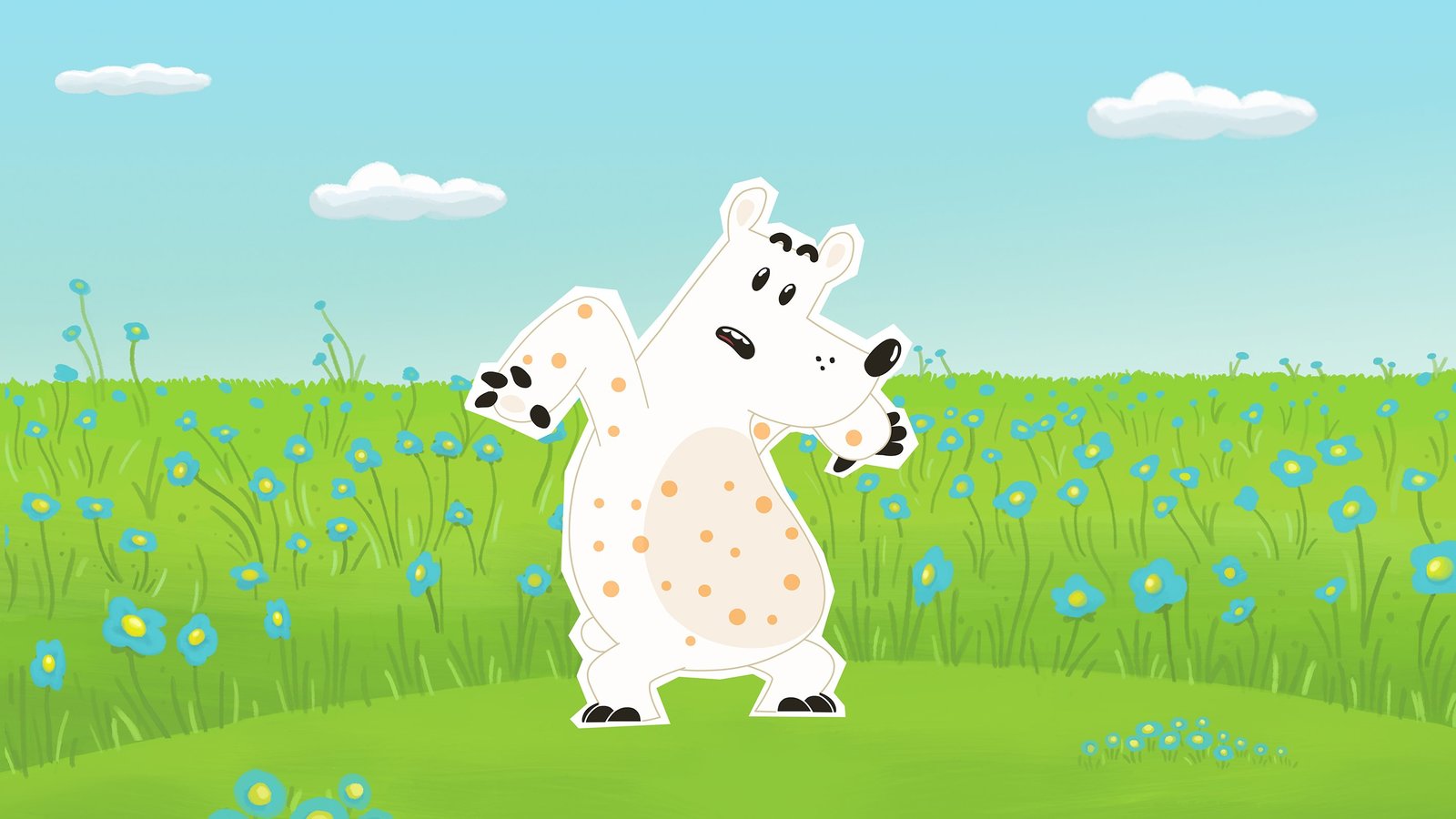 Der wertvollste Regenschirm der WeltAls Eisbär Grumpel nach einem Nickerchen in einer Wiese aufwacht, ist er über und über mit kleinen hellbraunen Punkten bedeckt. Ob er etwa die gefährlichen und ansteckenden Bären-Masern bekommen hat?Bild: © ZDF/JEP Animation