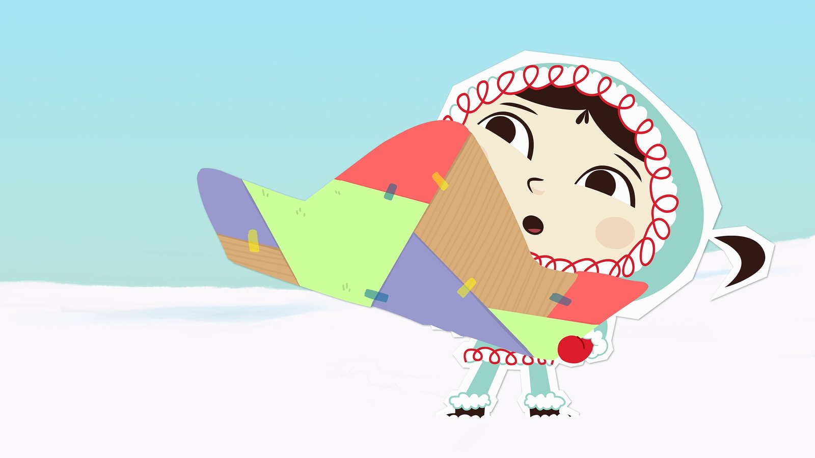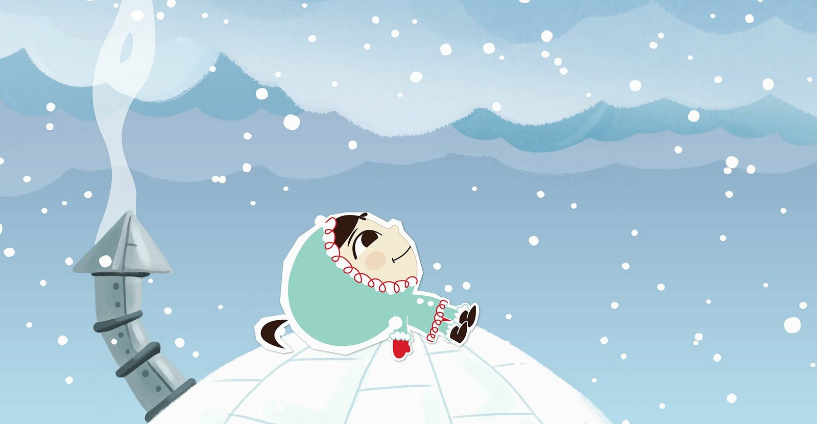 Spinnen und SpringenManchmal legt sich Inui einfach auf das Dach ihres Iglus und lässt die vielen weichen Schneeflocken auf sich herunterrieseln.Bild: © ZDF/JEP Animation