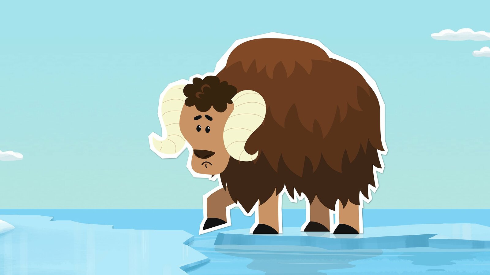 Der TalismanDer junge Moschusochse Willy ist aus seiner Heimat, der Tundra, mit einer Eisscholle zum Nordpol abgetrieben worden. Er ist furchtbar ängstlich und traut sich den Sprung von der Eisscholle ans Festland nicht zu. Wie soll er den Weg nach Hause schaffen?Bild: © ZDF/JEP Animation