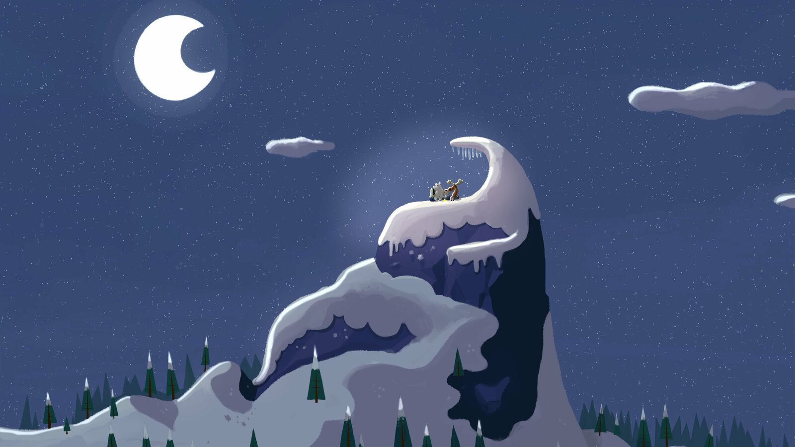 Eine wunderbare Nordlicht-NachtInui und ihre Freunde befinden sich ganz oben auf der Bergspitze und warten gespannt auf das polare Nordlicht, das nur in ganz wenigen Nächten zu sehen ist.Bild: © ZDF und JEP Animation.