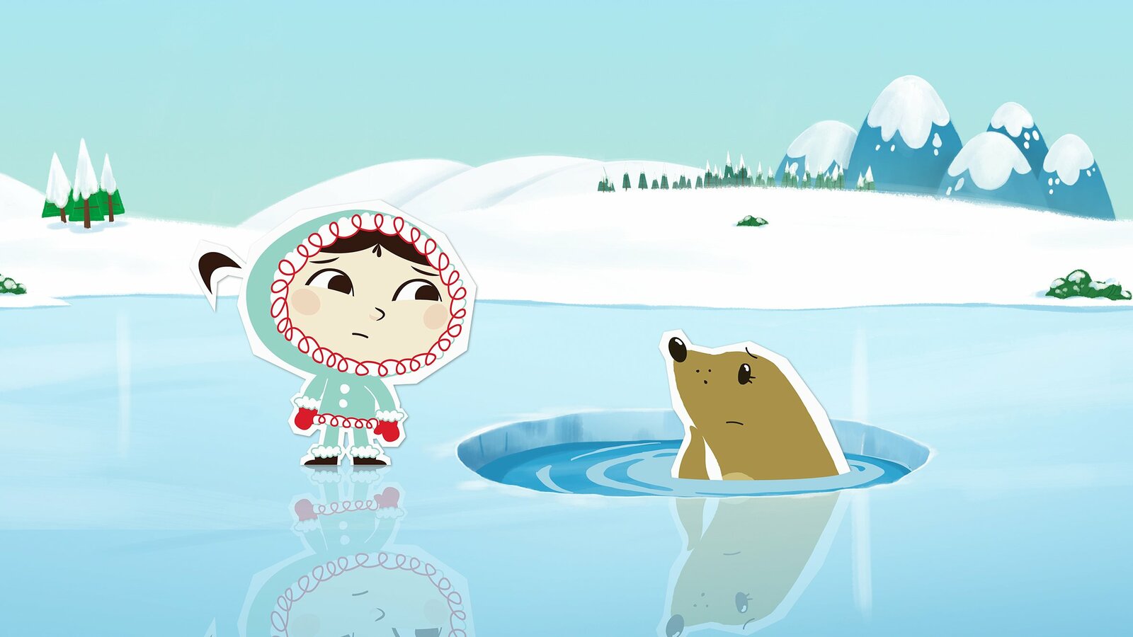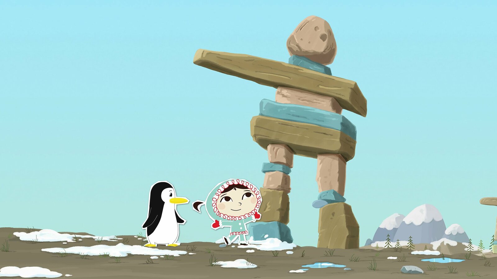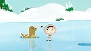 Eisangeln – aber richtig!Durch ein Missgeschick hat Hubert ein Riesenloch in Inuis Iglu hineingeschlagen. Bei der Reparatur will sie ihn dann lieber nicht dabei haben, weil man bei ihm leider nie sicher sein kann, ob es nicht unabsichtlich noch schlimmer wird.Bild: © ZDF/JEP Animation
