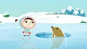 Versteckspiel im SchneeLissy soll beweisen, dass sie die allerschnellste Eisblockrodlerin ist. Sie behauptet nämlich, dass die besten Könner dieses Sportes wie sie selber vom Südpol kommen.Bild: © ZDF/JEP Animation