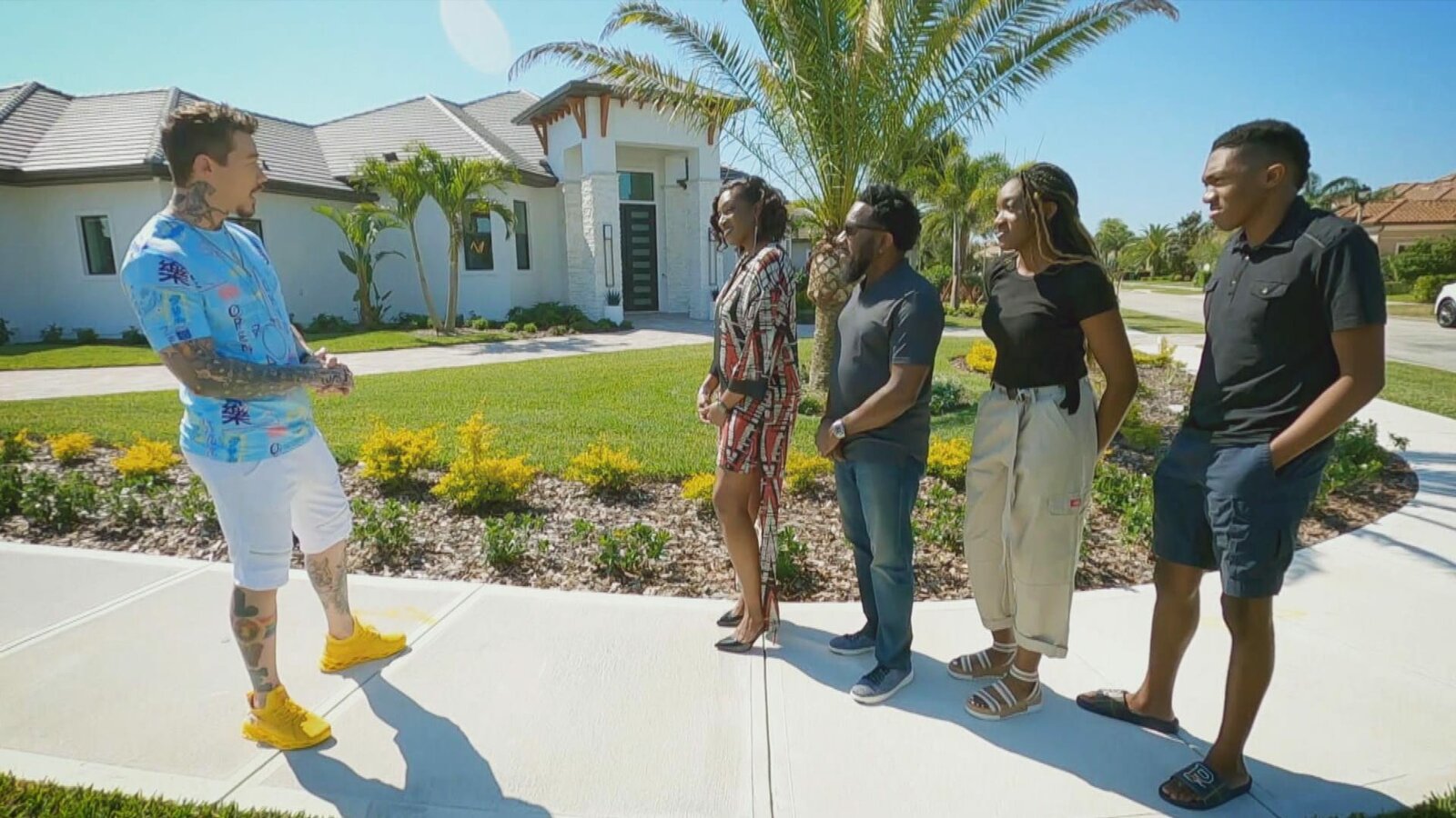 Der Fuhrpark hat VorrangH2 David Bromstad with winner in front of houseBild: © 2018, Scripps Networks, LLC. All Rights Reserved.