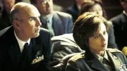 Stich ins Wespennest (2)In der Verhandlung gegen Lt. Roberts (Patrick Laboyorteaux, r.) hat Harmon Rabb Jr. (David James Elliott, l.) die Verteidigung übernommen. Lt. Harriet Sims (Karri Turner, M.) wohnt der Verhandlung bei.Bild: © PAT