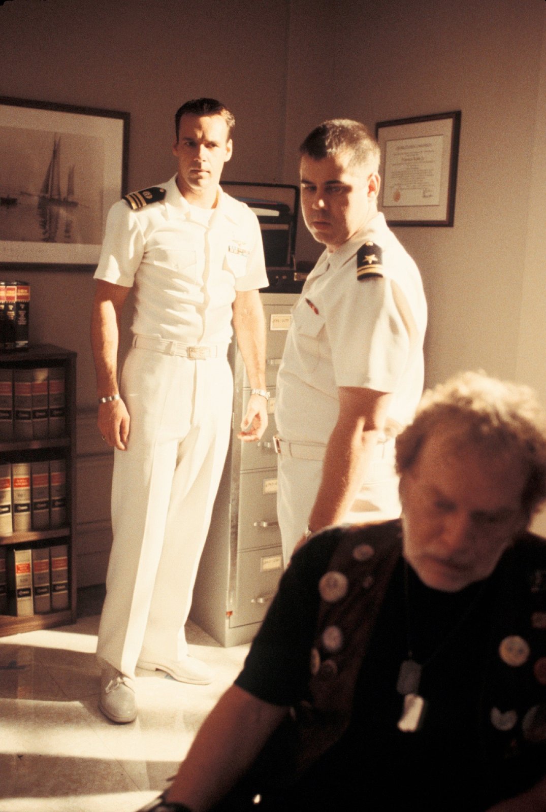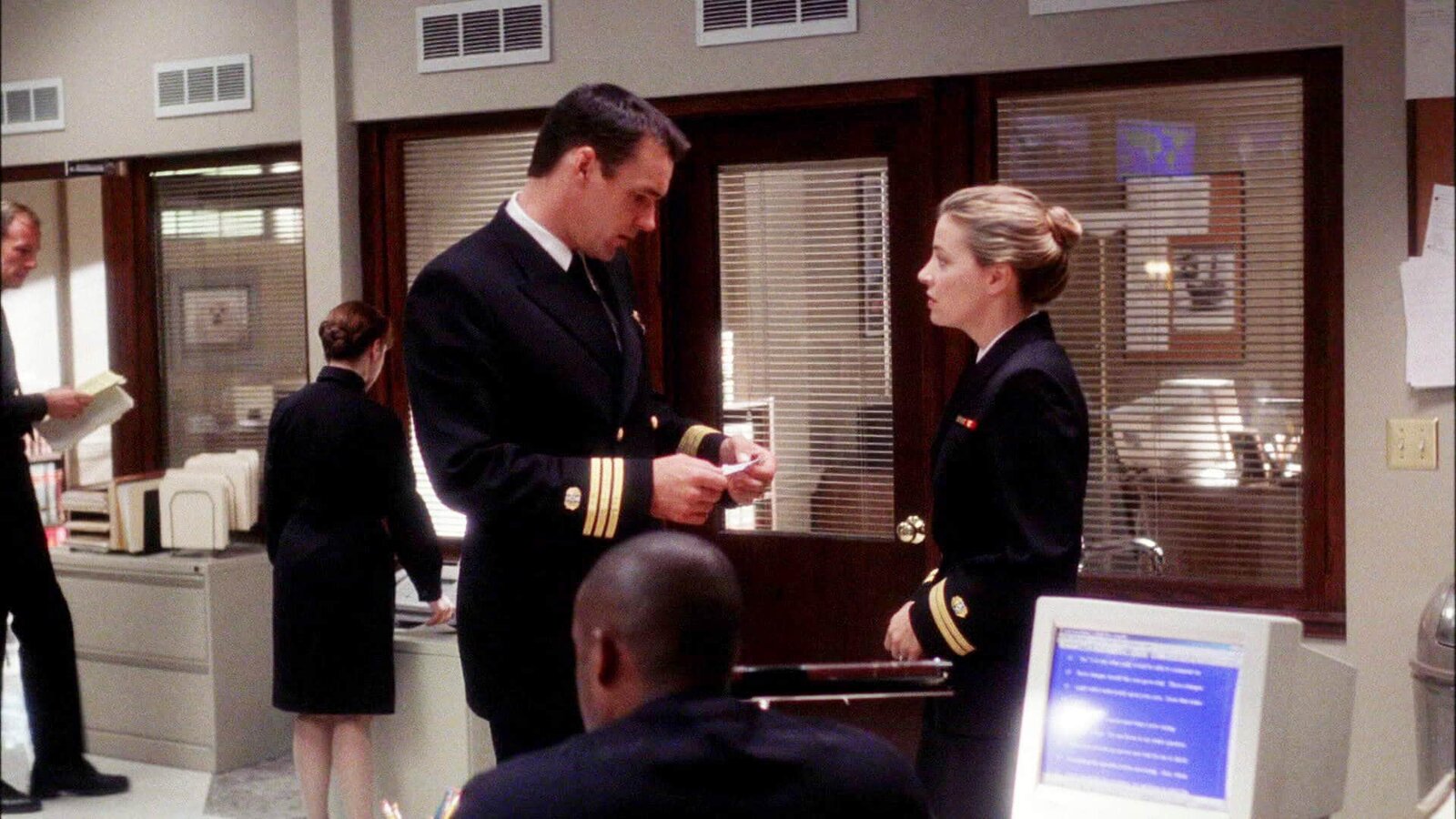 Vier FrauenLieutenant Commander Bud Roberts (Patrick Labyorteaux, l.) und Mac (Catherine Bell, r.) arbeiten an einem strittigen Fall ...Bild: © CBS Television