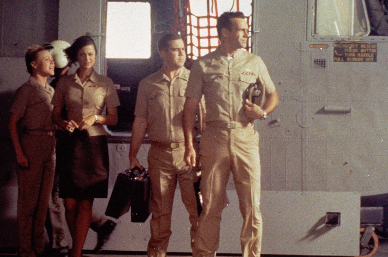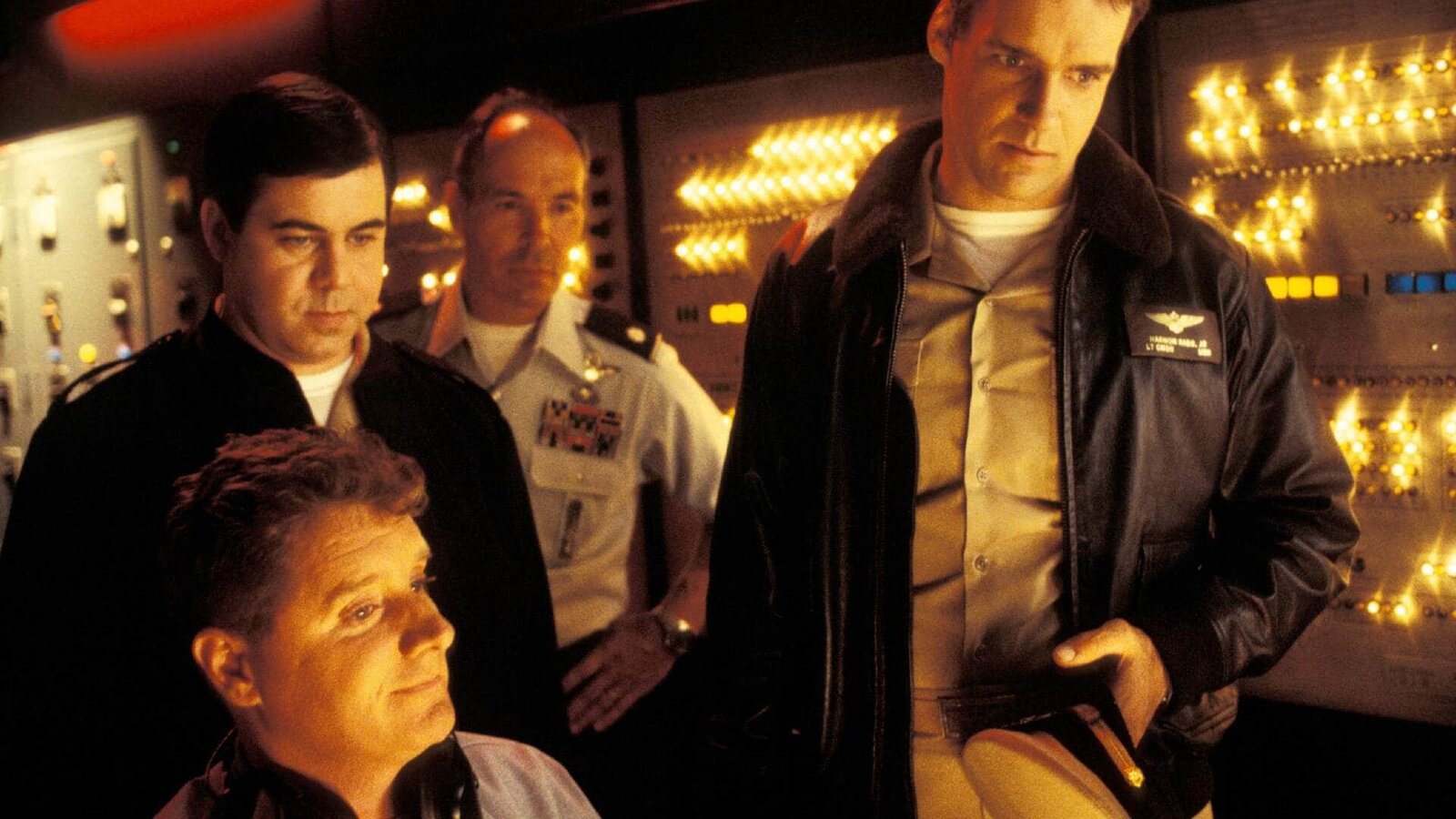 Verräter an BordV.l.: Sturgis Turner (Scott Lawrence), Lt. Loren Singer (Nanci Chambers), Maj. Gen. Gordon 'Biff' Cresswell (David Andrews), Harmon Rabb, Jr. (David James Elliott), Sarah MacKenzie (Catherine Bell), Bud Roberts, Jr. (Patrick Labyorteaux)Bild: © MG RTL D / 2018 CBS Studios Inc. Foto: MG RTL D / 2018 CBS Studios Inc.