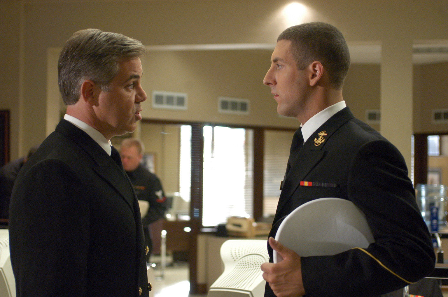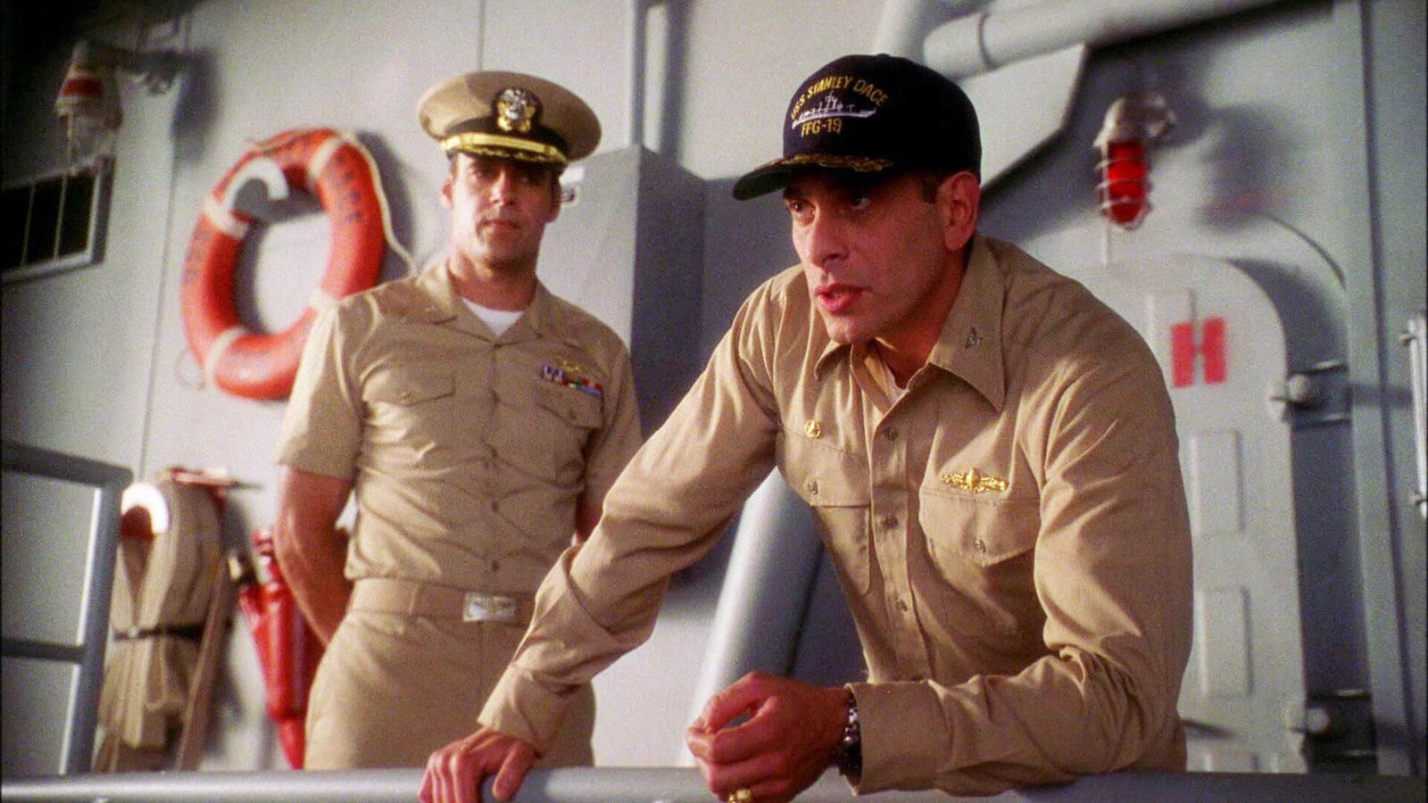 Der SturmLieutenant Commander Bud Roberts (Patrick Labyorteaux, l.) unterhält sich mit seinem Bruder, Midshipman Mike Roberts (Michael Bellisario, r.), über den Unfall auf dem Ausbildungsschiff der Marine ...Bild: © CBS Television