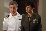 Der PiratMac (Catherine Bell, l.) erhält die Aufgabe, zusammen mit dem jungen Lieutenant Vukovic (Chris Beetem, r.), die Verhandlungen mit dem Piraten Anwar zu führen, um die Leute freizubekommen, die als Geiseln genommen wurden ...Bild: © CBS Television