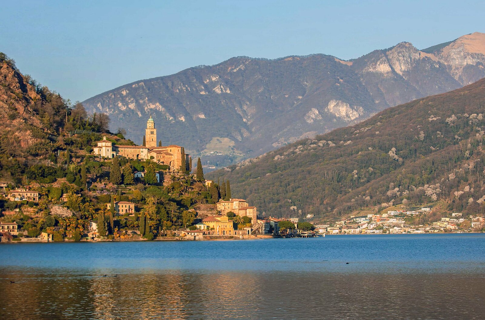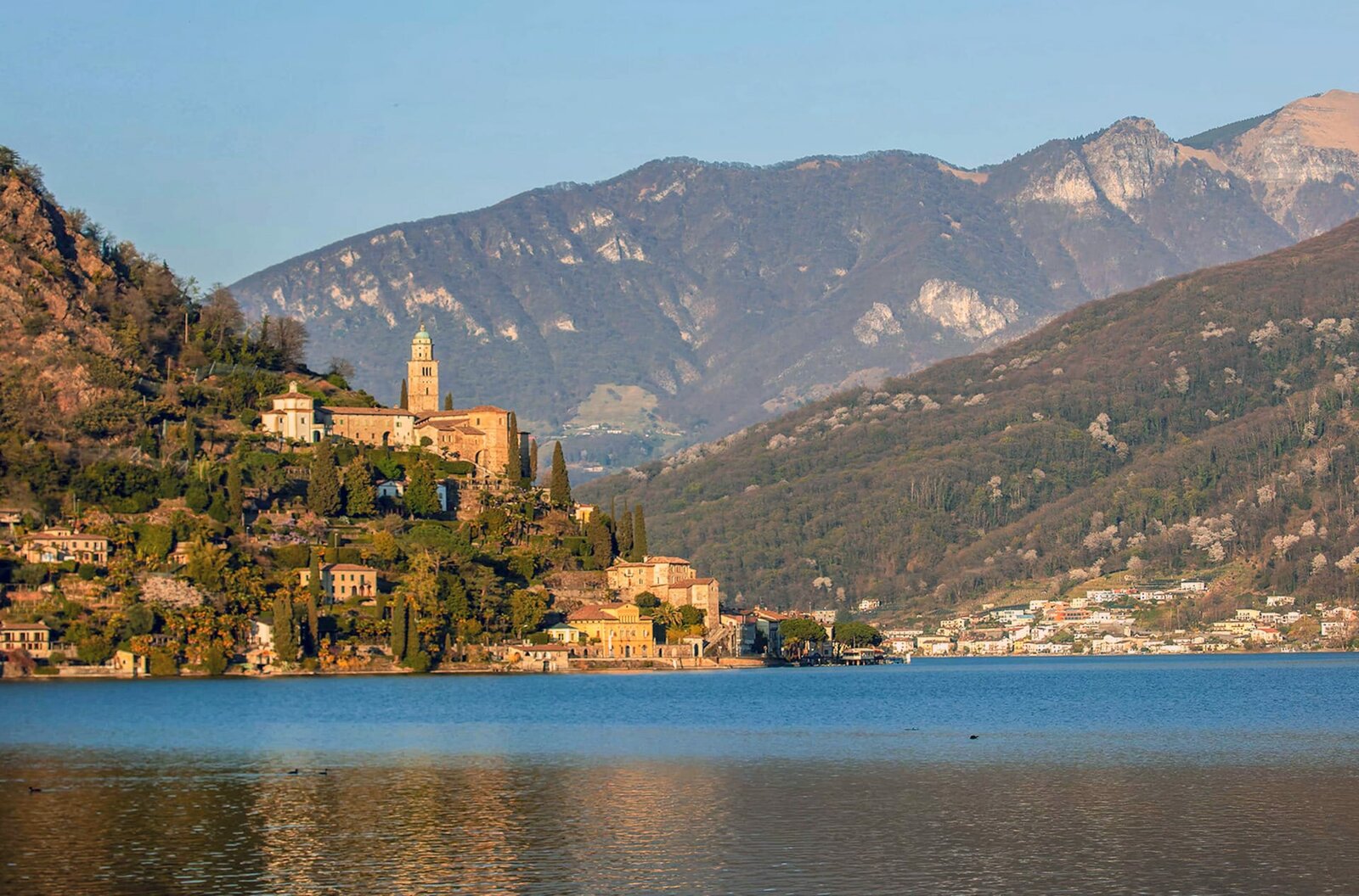 Am Luganer SeeGoldenes Abendlicht lässt die Kirche von Morcote am Luganer See aufleuchten.Bild: © Klaus Scheurich