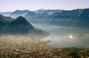 Am Luganer SeeMorgendunst hängt über der Tessiner Stadt Lugano.Bild: © Samuel Gyger / © Klaus Scheurich