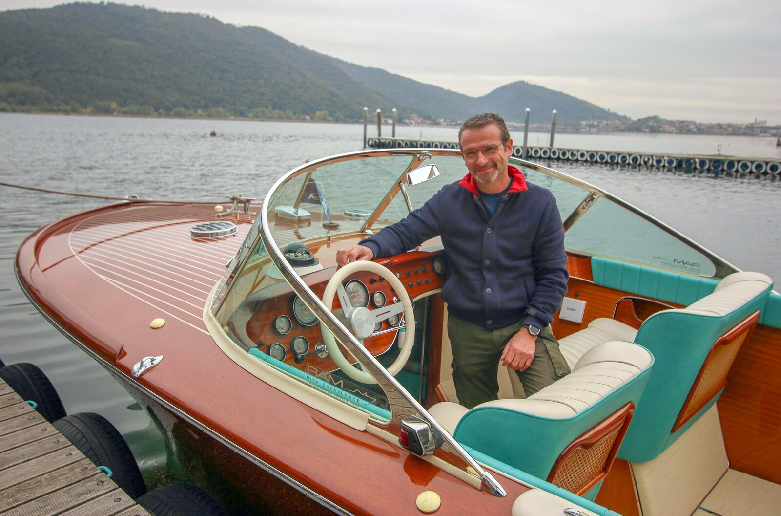 Am Lago d'IseoLuigi Paltenghi fährt in einem Riva-Boot auf den Iseosee hinaus.Bild: © ZDF / © Roland Gockel