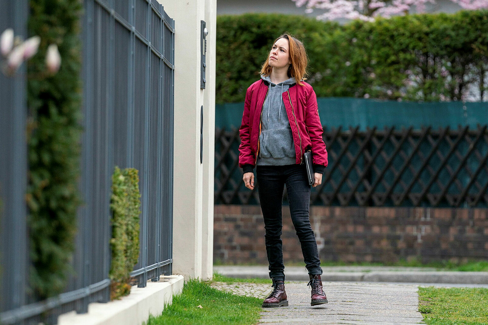 Elena Jung (Victoria Schulz) versucht die letzten Schritte des ermordeten Freundes nachzuverfolgen.Bild: © SRF/ZDF/Oliver Feist