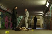 Die junge Mutter Nihal Alev (Jasmin Shahali, M.) wird tot im Spreetunnel in Köpenick aufgefunden. Ein brutaler Mord: Die Frau wurde noch gewürgt, als sie schon tot war. Kay (Seyneb Saleh) spricht mit der Spurensicherung am Tatort.Bild: © ZDF und Stefan Erhard.