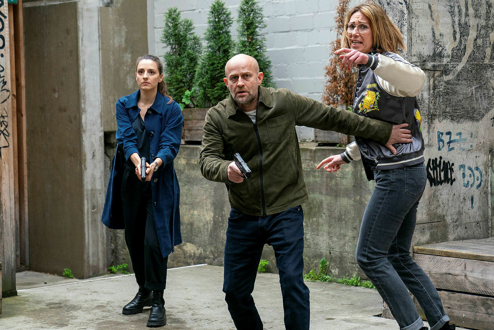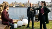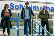 Der letzte TripRobert Heffler (Jürgen Vogel, M.) und Kay Freund (Seyneb Saleh, l.) kommen gerade noch rechtzeitig am Start Up von Nadine (Emma Rönnebeck) an, als sich die Situation plötzlich weiter zuspitzt.Bild: © SRF/ZDF/Oliver Feist