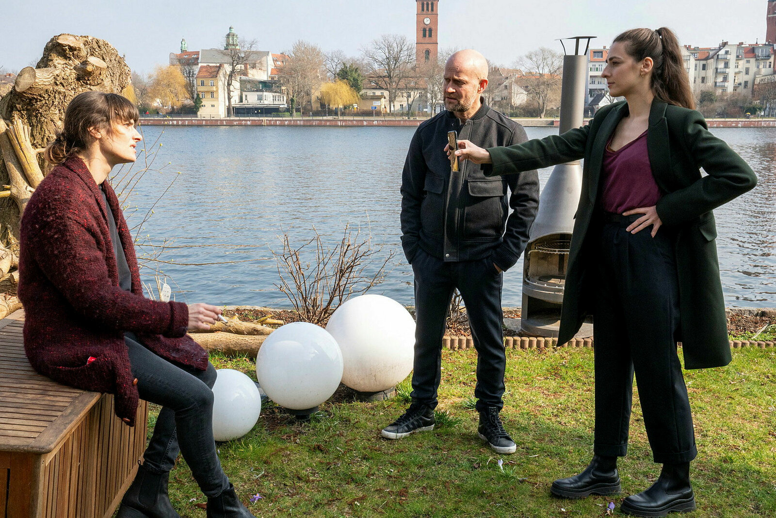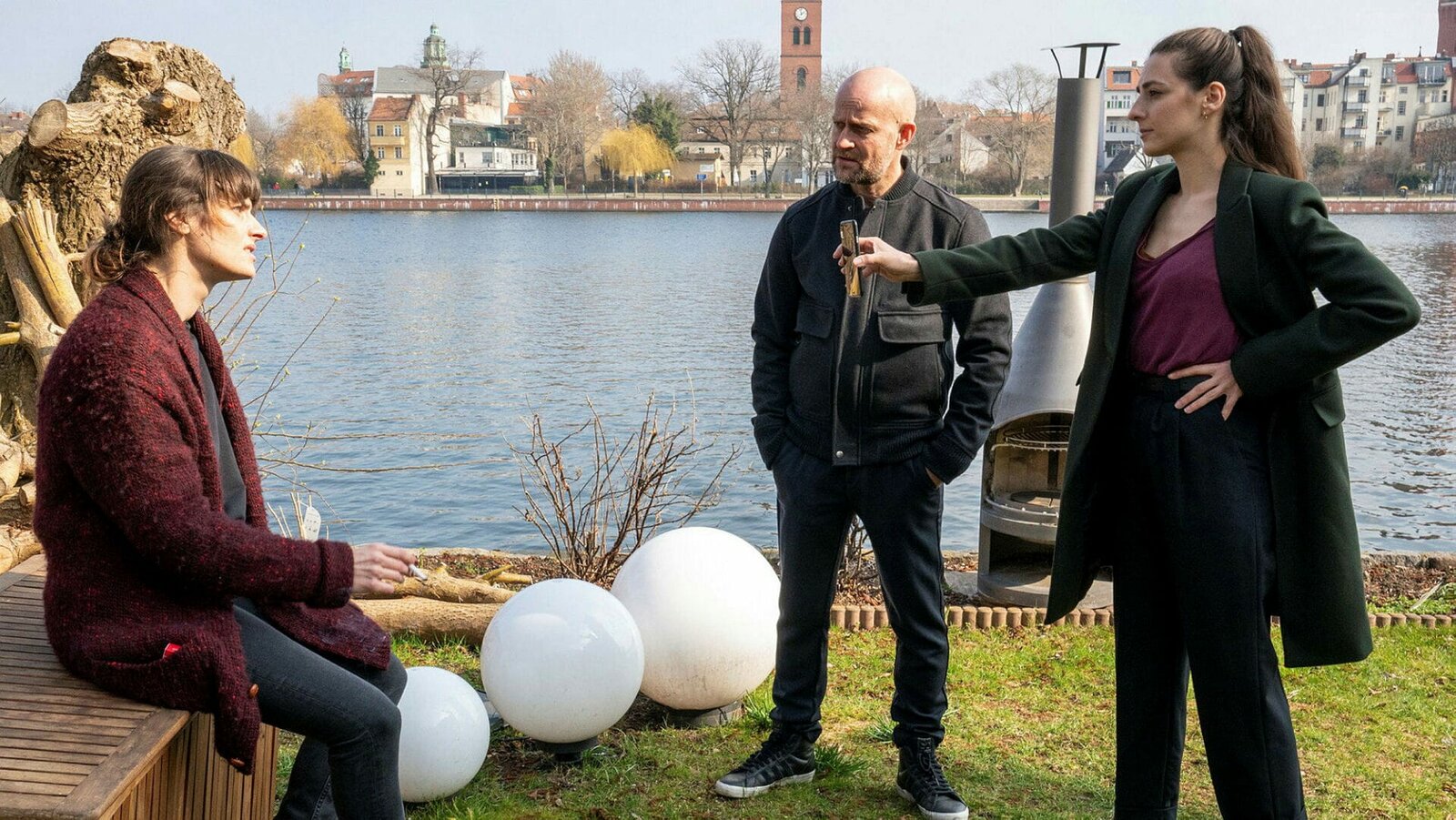 Jenseits der Spree Blutsbande Frida-Lovisa Hamann als Julia Radenski, Seyneb Saleh als Kay Freund, Rüdiger Joswig als Richard Köhler, Jürgen Vogel als Robert Heffler SRF/ZDF/Oliver FeistBild: © SRF1