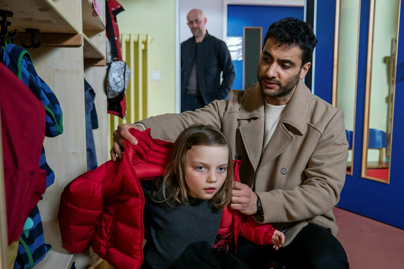 UntiefenVater-Tochter-Gespräch zwischen Robert (Jürgen Vogel, l.). und seiner mittleren Tochter Stella (Luna Jordan, r.). Sie ist besorgt, dass ihr Vater wieder in seinem alten Job arbeitet.Bild: © ZDF und Oliver Feist.