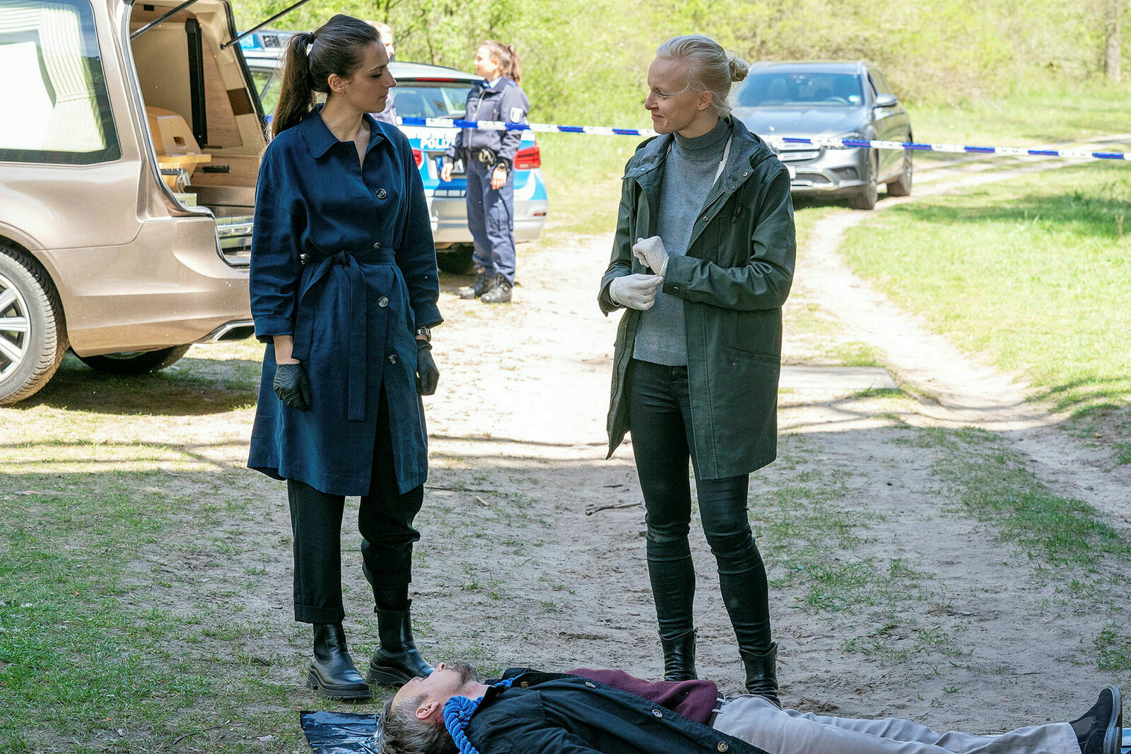 Auf Grund von Personalmangel unterstützt Robert Heffler (Jürgen Vogel, l.) die junge Kollegin Kay Freund (Seyneb Saleh, r.) in ihrem aktuellen Fall. Die beiden lernen sich am Tatort kennen.Bild: © ZDF und Stefan Erhard.
